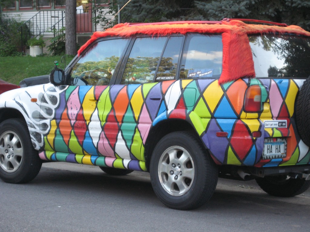 So, I love Art Cars. What a cool way to inject a little color and spirit into the world, right? One day, I might have my own. Once a year, there is an art car parade in Uptown Minneapolis, and I love to see what people do with their vehicles. It’s even more fun to see them around town though!