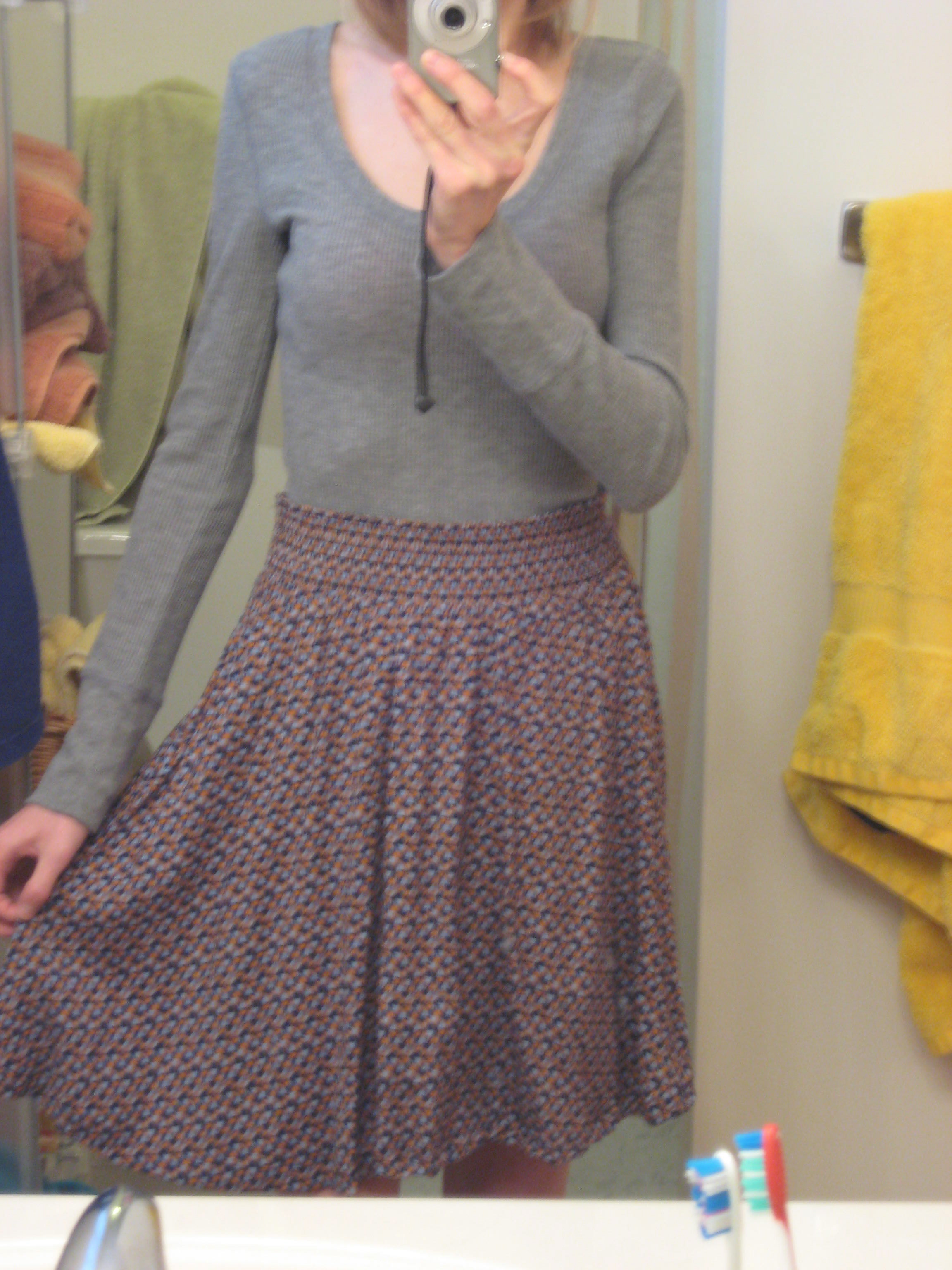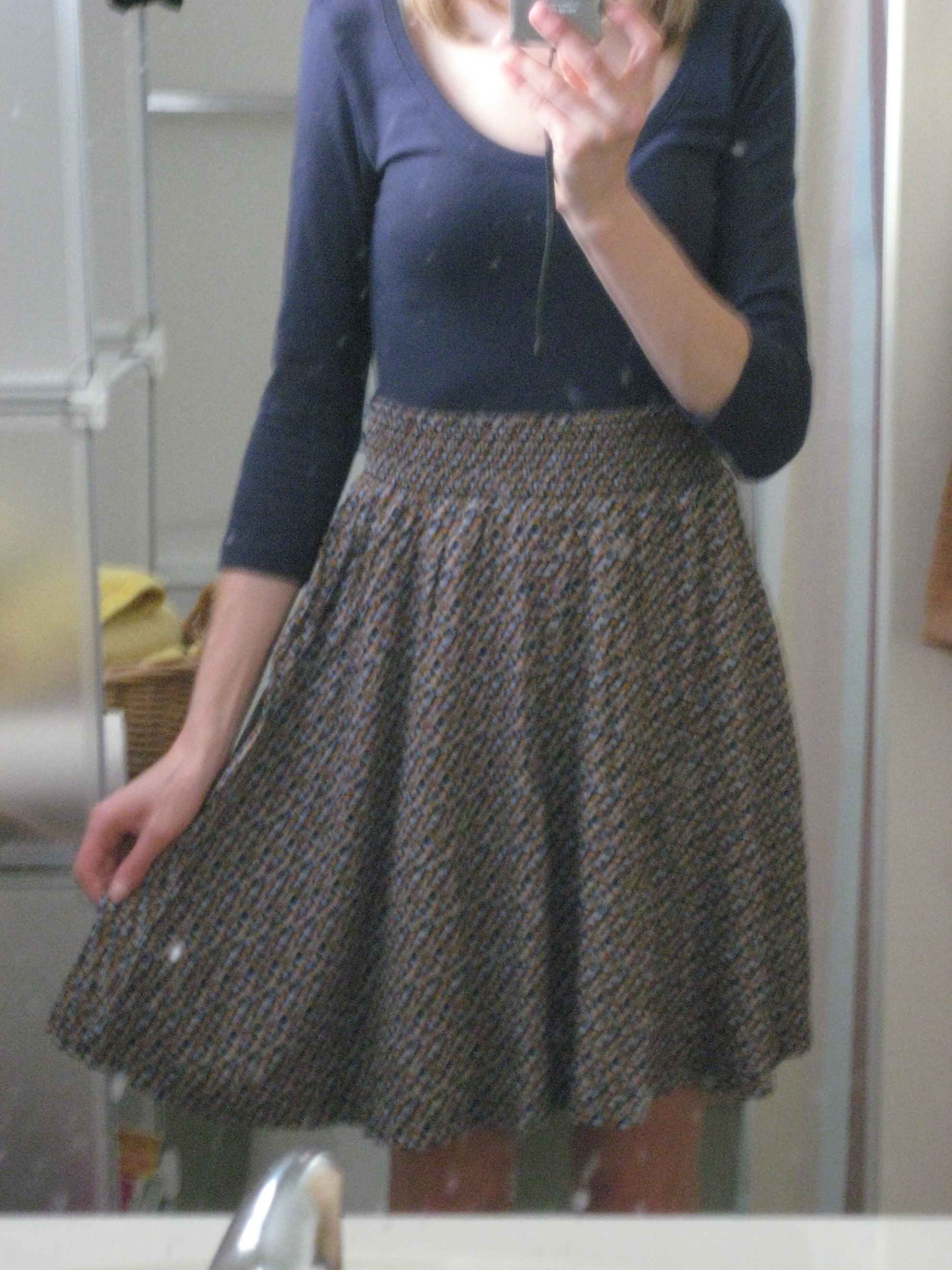 Running out of time to be continuously pacing our house in my tights and man-go-round looking frighteningly close to being ready, I looked once again at the dress I had on. Why, was that an elastic waistband on the skirt?