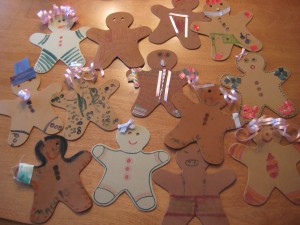 Today we went to a fabulous rendition of the Nutcracker Ballet. To get ready, though, we decorated some foam gingerbread men I bought on one of my sprees at Michaels. I’d like to say children made all of these, but some of them definitely were made by adults… and we put the gingerbread symbol on the advent calendar.
