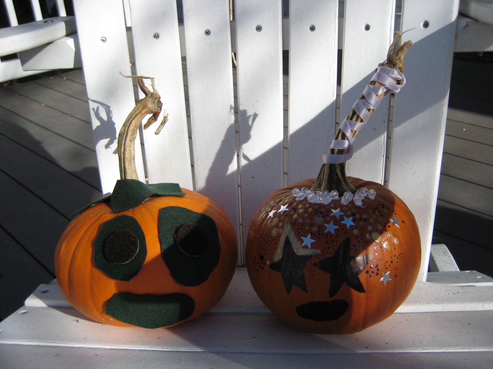 | dopey felt pumpkin and bowie pumpkin lounging on the dek |