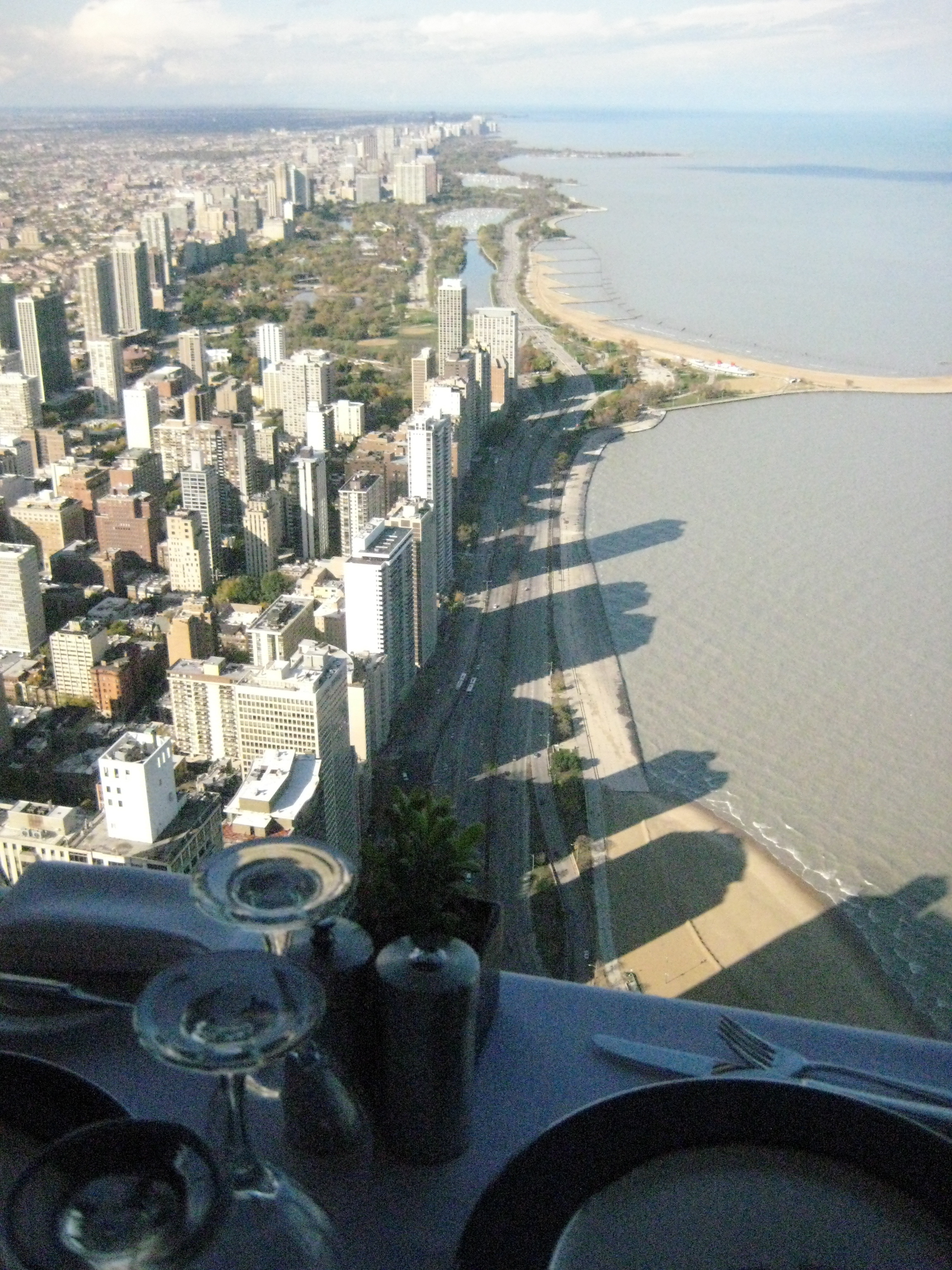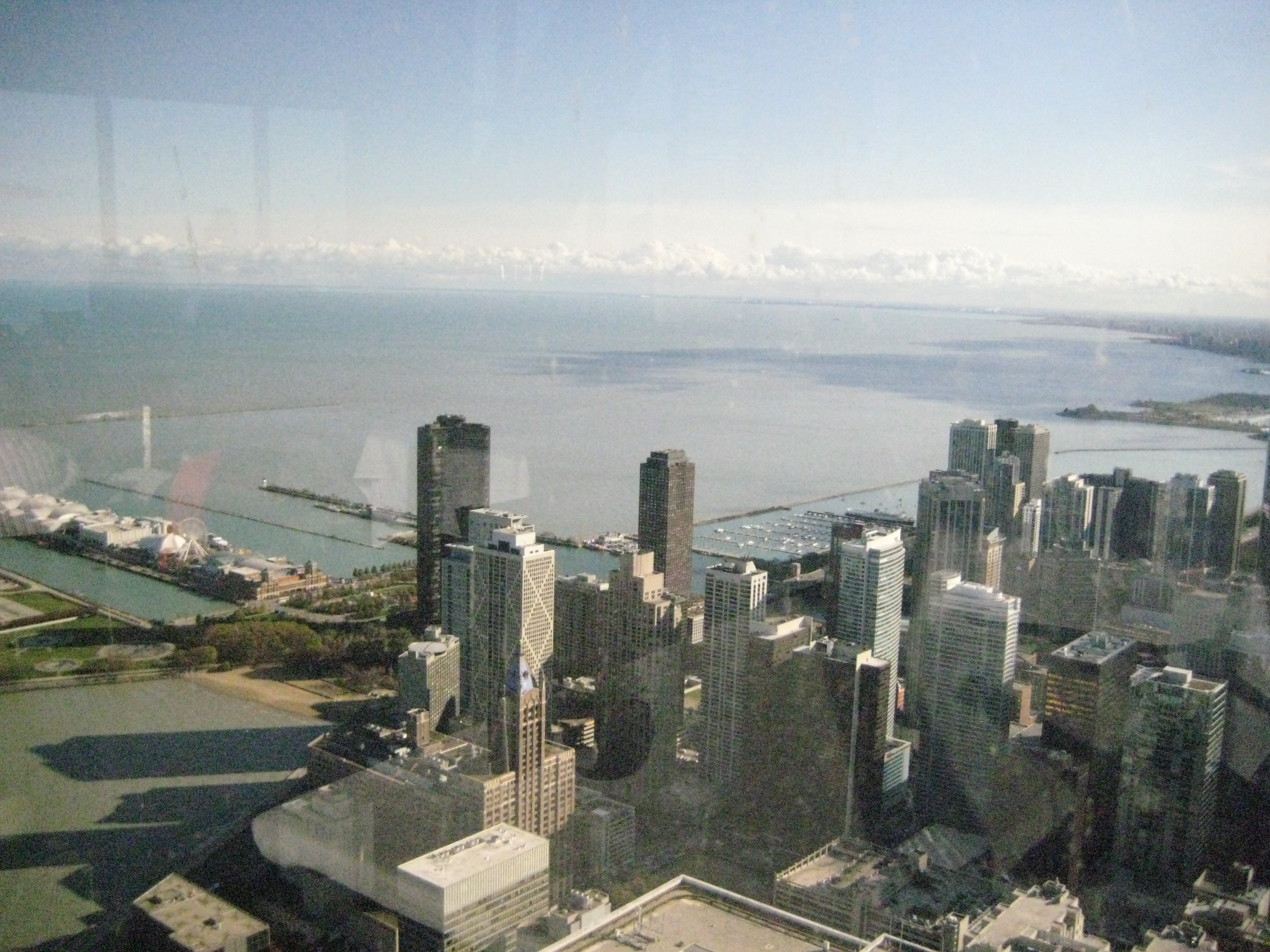 Up on the 95th floor we enjoyed catching up with family and a surprisingly affordable lunch. There was a buffet available which I believe was even more reasonable, but we instead went for salads, sandwiches, and some delicious beverages. As our meal was winding down we wandered around the perimeter of the cafe/ lounge out over the city; discussing The Devil in the White City and looking where my cousin pointed out their neighborhood.