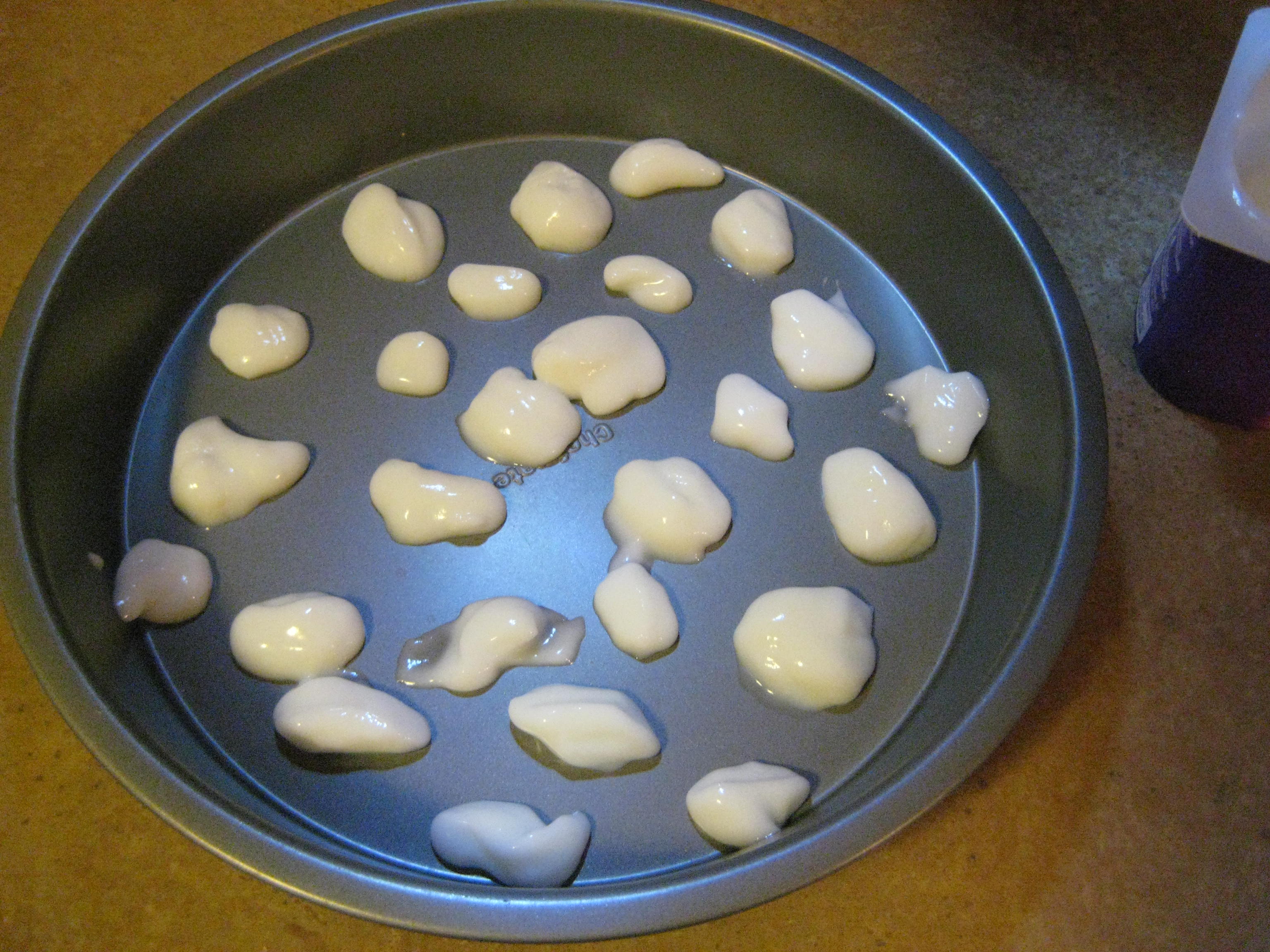I’m talking about frozen yogurt drops. Simply grab a carton of yogurt (I used vanilla dannon, but you could probably try greek yogurt too or any other flavor), drop it in tiny spoonfuls onto a non-stick pan or baking sheet, freeze for an hour or two, and enjoy!