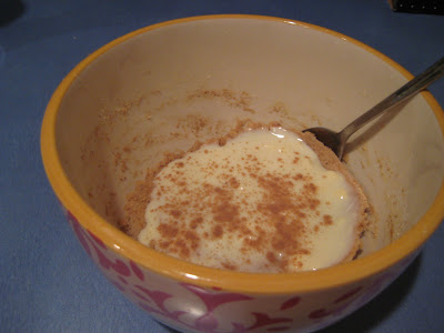 | with vanilla pudding and cinnamon on top |