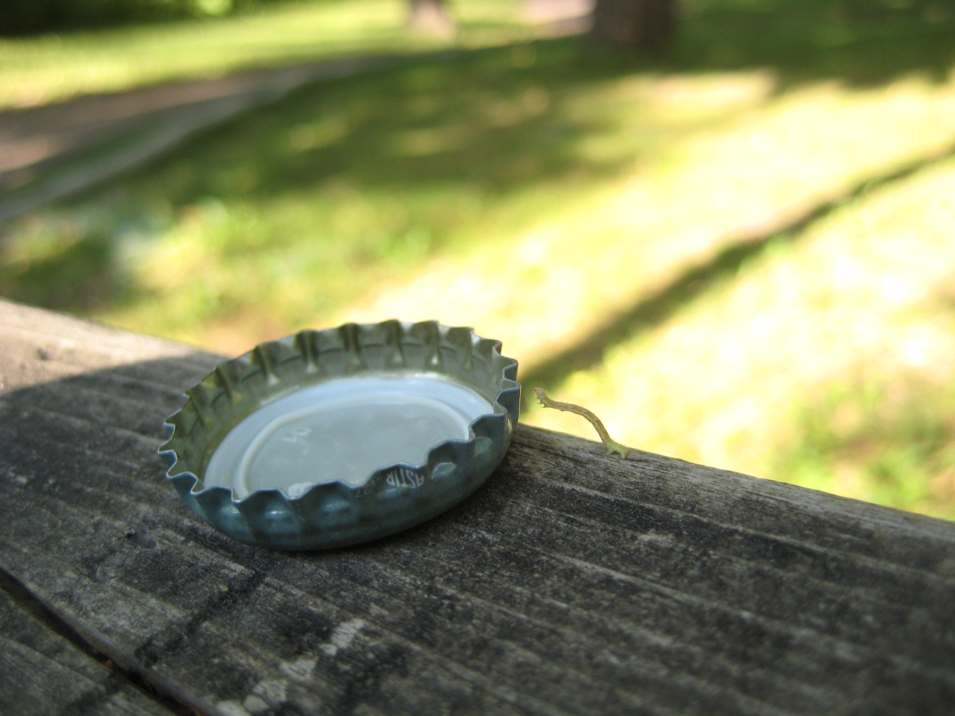 Yesterday was the most beautiful evening, a respite at last from the staggering heat of the last few weeks. So man-go-round and I packed up some things for a little picnic in the park (okay, beer in the park, actually, but picnic sounds classier). While there, we observed the cutest little creature crawling around on our picnic table.