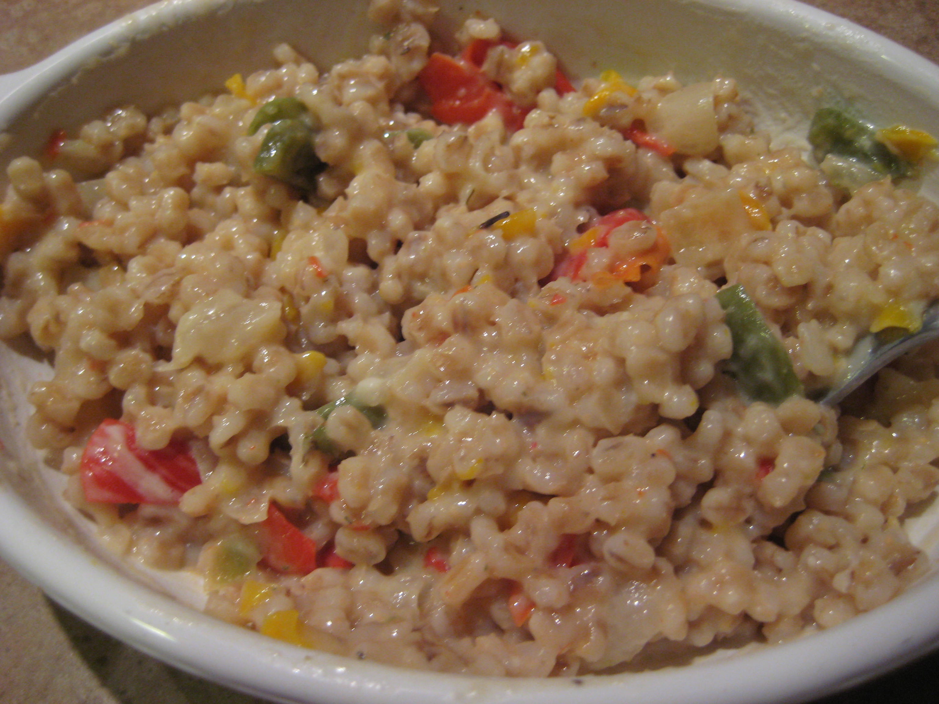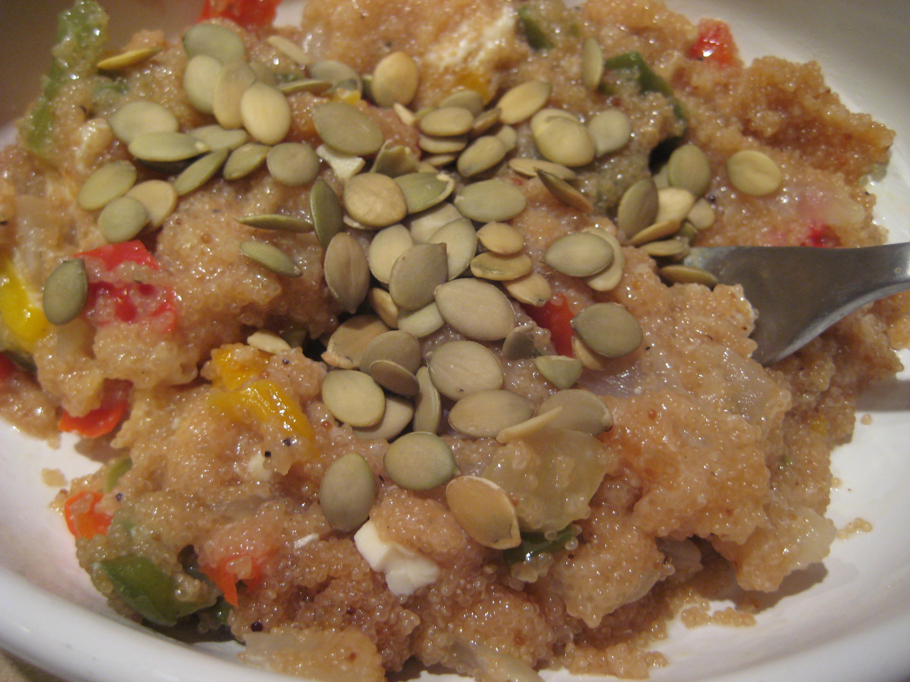 quinoa, peppers, onions, cream cheese, garlic, pepitas