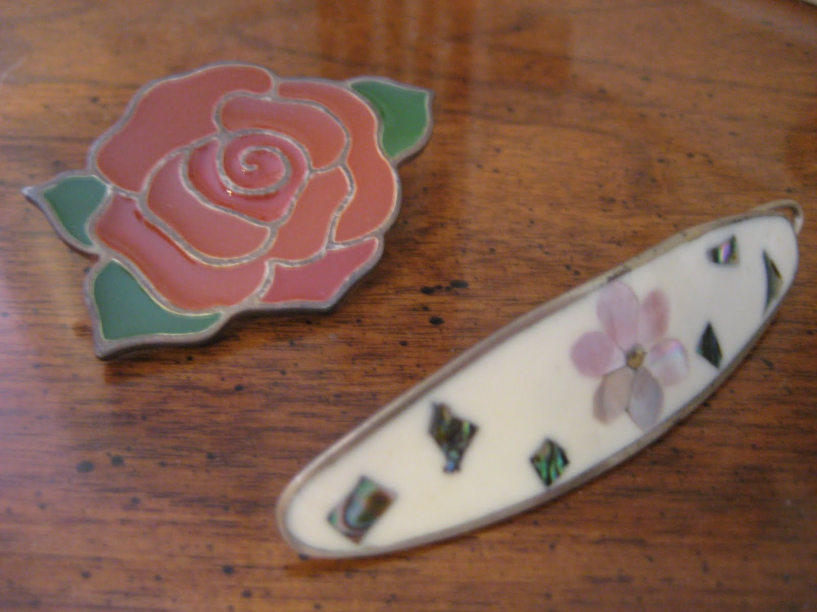 Rose pin and barrette. The barrette is from my mom too I think, or my Grandma.