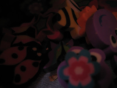 so… I had some fun in the kitchen with the erasers, the flash, trying to make a good indoor picture at night with no natural light…. you see what I do with my free time. I”m not just a word nerd, I’m a nerd nerd! Nerd nerds unite! Like Celia Hodes said, I’m lettin my freak flag fly. Not that this is anything new I guess…