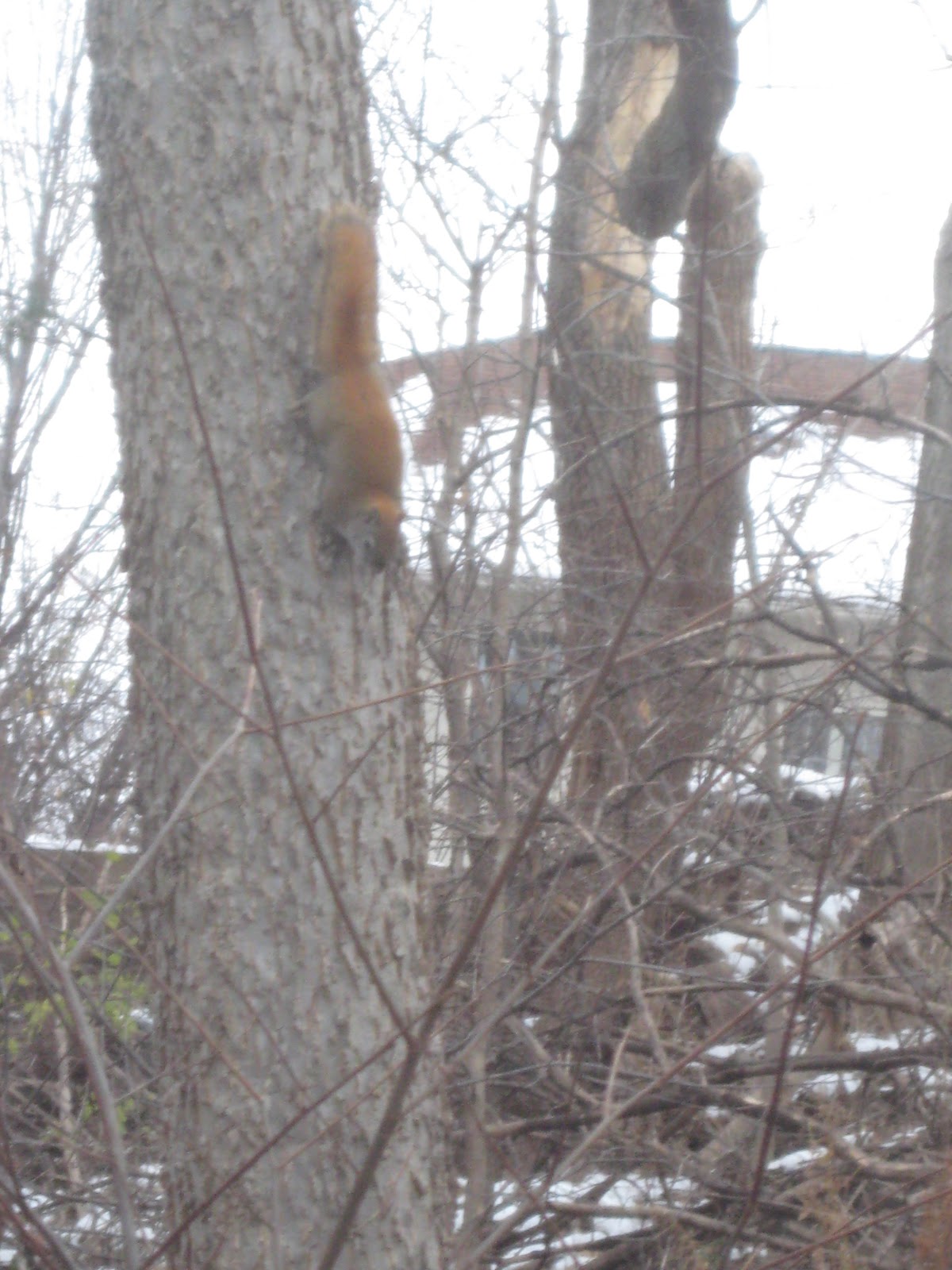 I watched this interaction outside of my window a few days ago, and the last photo was the point where the crow looked right at me and screeched for 5 minutes. No wonder that baby red squirrel shot up the tree so fast!