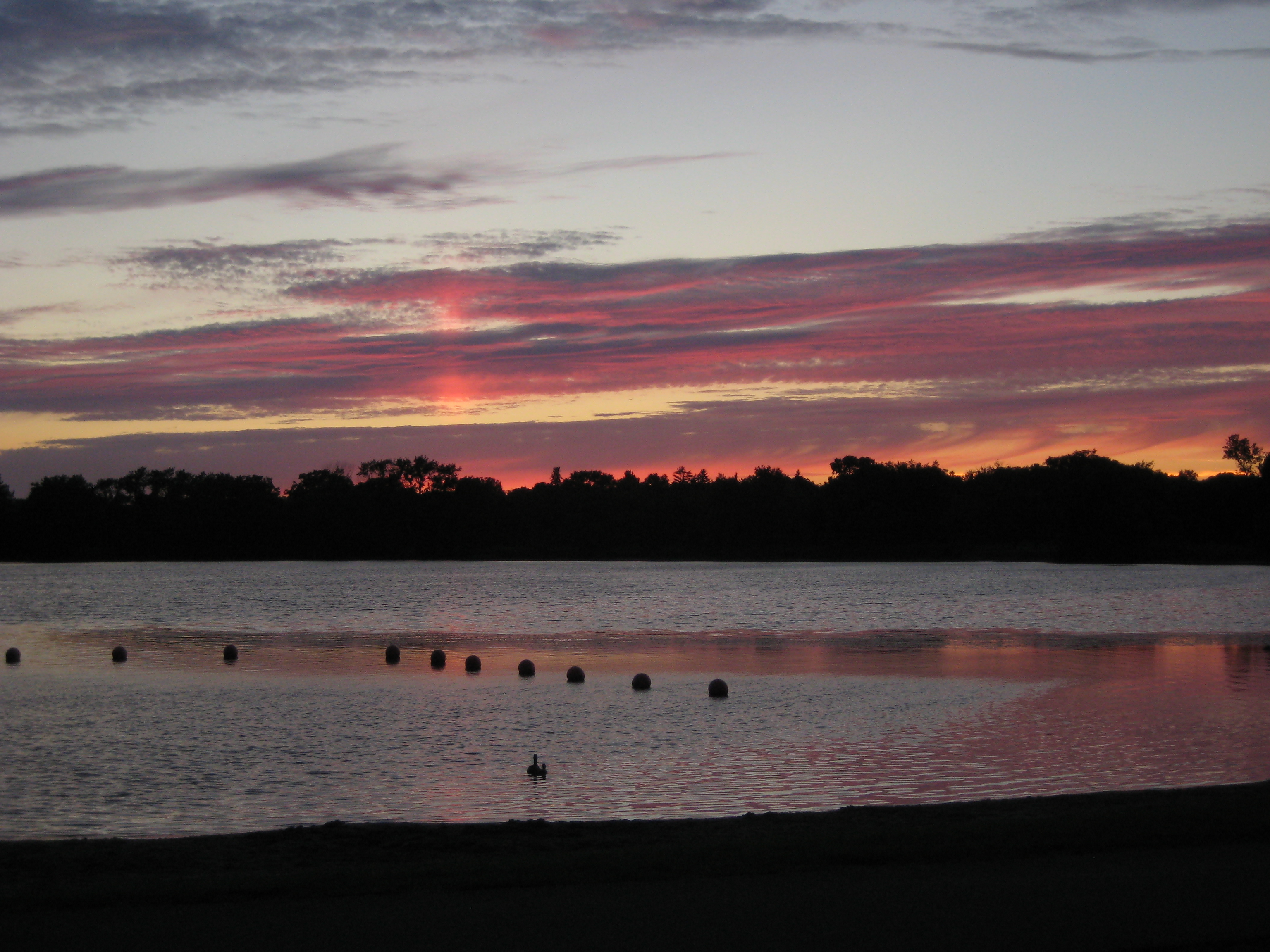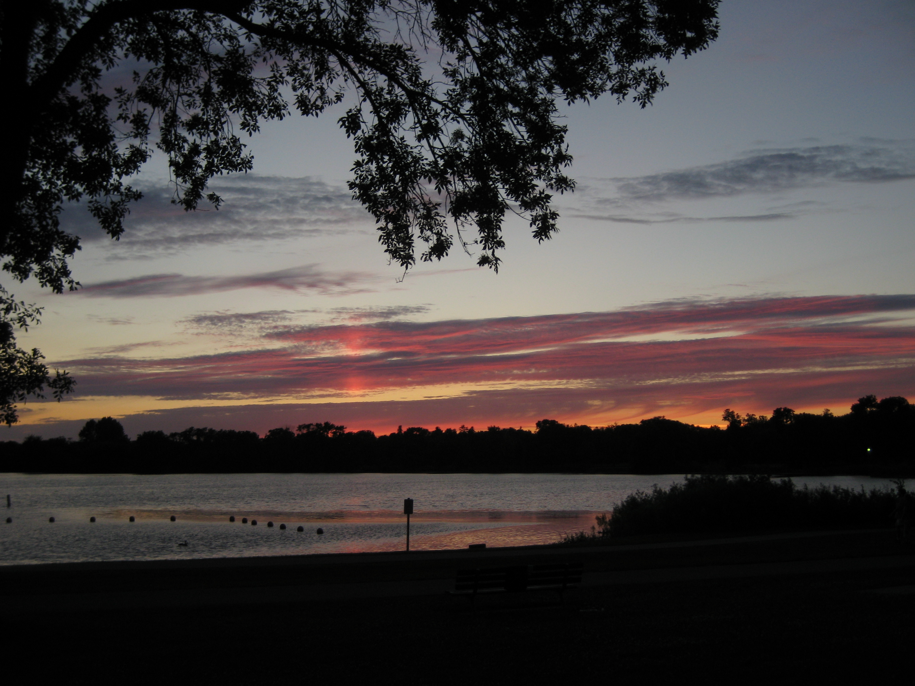 Tonight we went over to a friends house for dinner. After bocce ball by the lake, vegetarian lasagna, chilled white wine and good company, we were graced with this sunset over Lake Hiawatha.