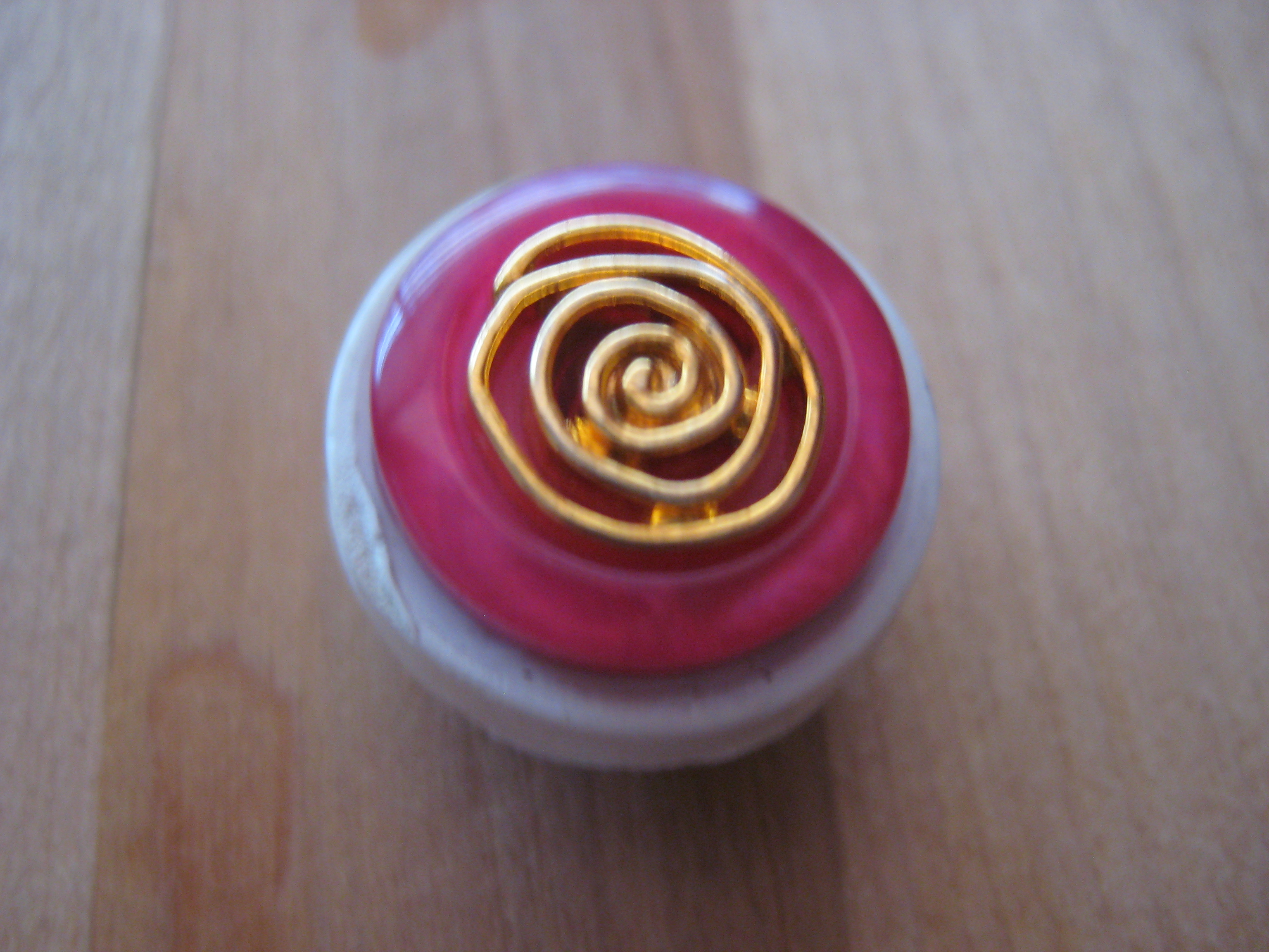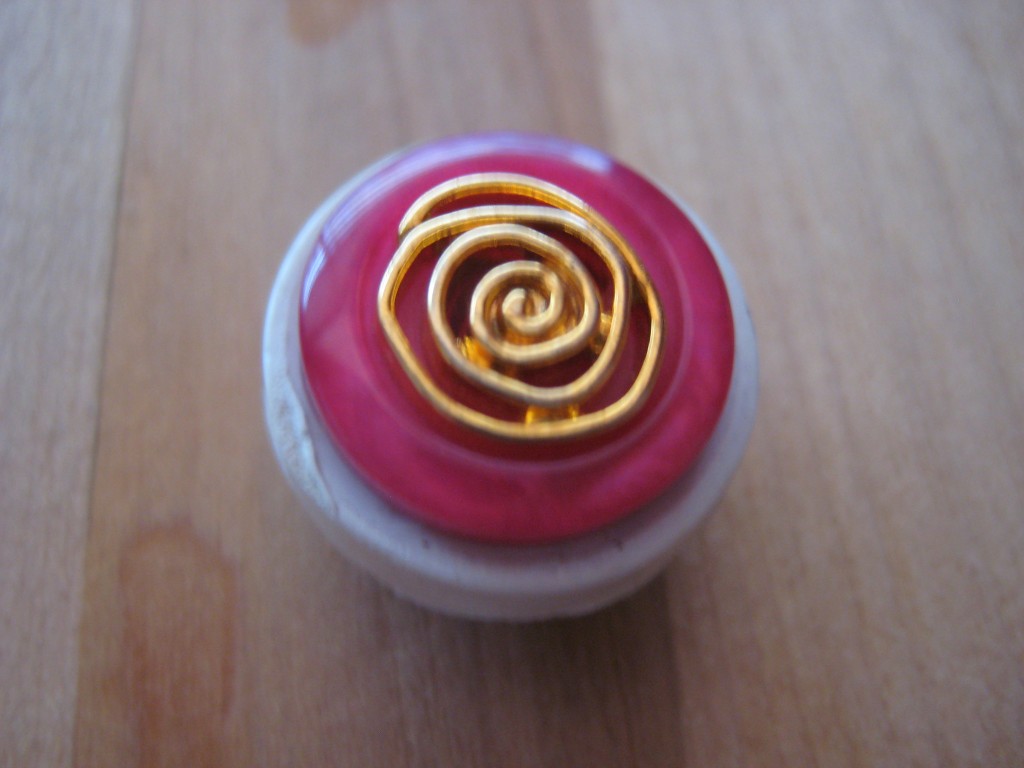 This first shop we stopped at, Designs by RED, had both antique finds and crafts by contemporary designers. I bought this adorable button magnet. Sure, I could make this by myself (and would quite enjoy it!) but if I can spend under a dollar and buy something supper pretty to support another crafter? I will usually do that. And this is how collections are born! Here it is:
