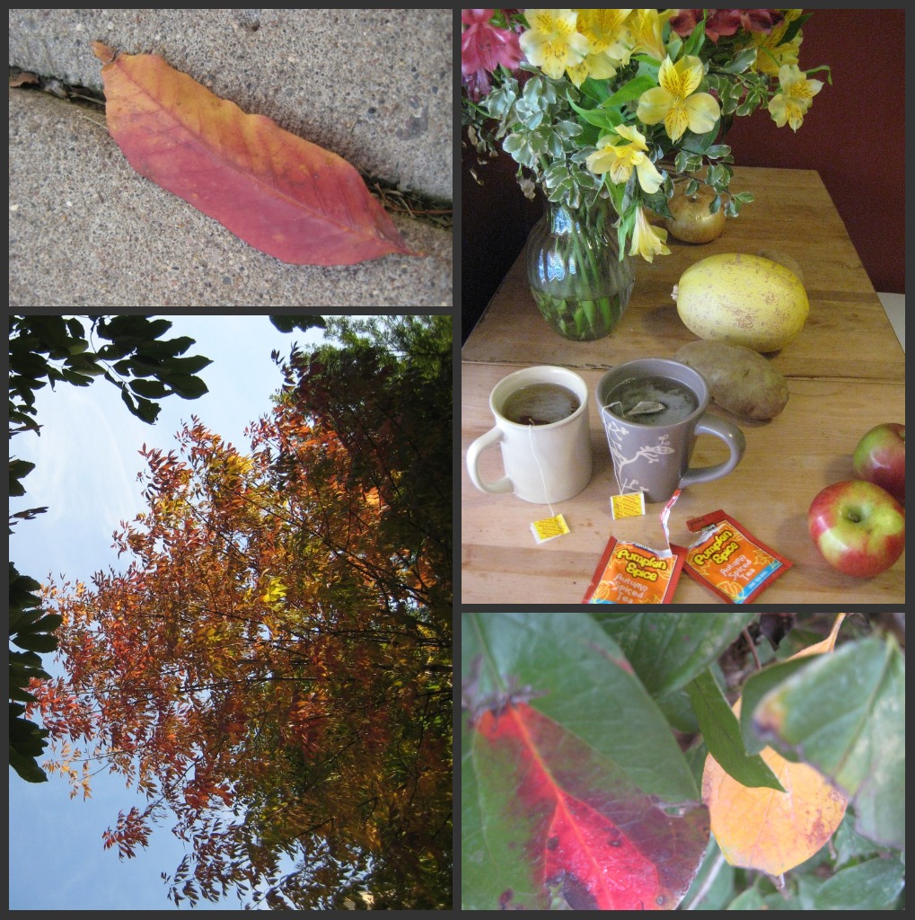 changing colored leaves, pumpkin patches, sweaters and scarves, apples and apple cider, pumpkin spice tea, spaghetti squash, Oktoberfest, football games, Halloween, boots and tights, pumpkin ale, soups, Thanksgiving, acorns, jumping in leaf piles…