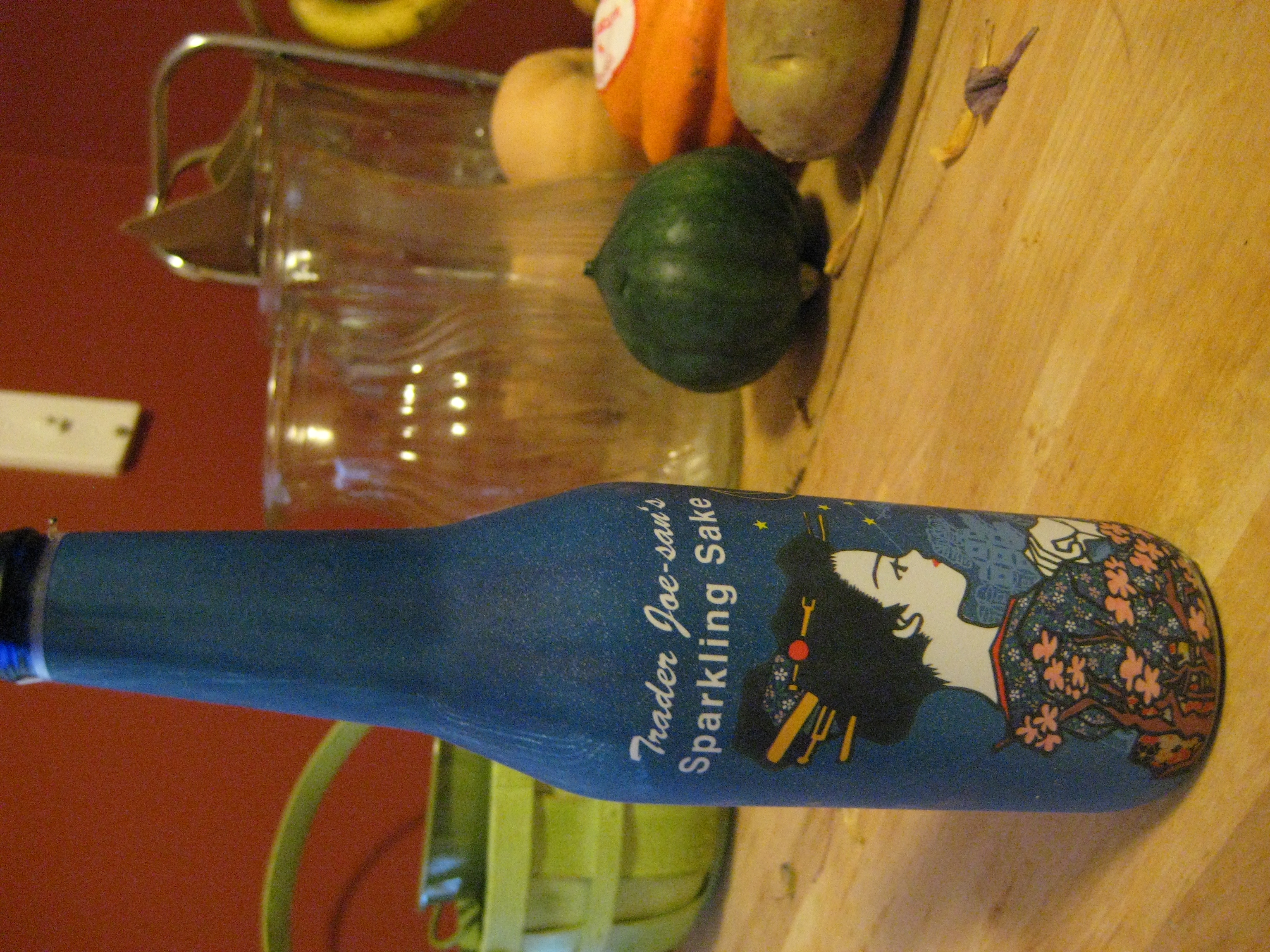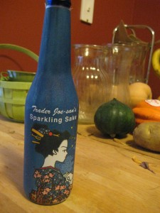 2. Trader Joe’s Sparkling Sake: I tried this one out at a friend’s house this evening. I bought it back in the summer and hadn’t gotten around to trying it.
