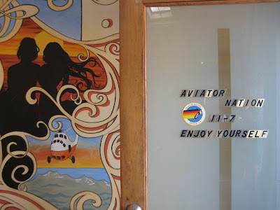 we mosied on a bit after refueling, and what should catch my eye but the color explosion of quintessential surf style boutique Aviator Nation… maybe it was the bright colors, the classic mural on the wall, or the “hold it against your cheek” soft t-shirts and hoodies… If it’s retro, mod, or classic americana surf, chances are I’m gonna like it.