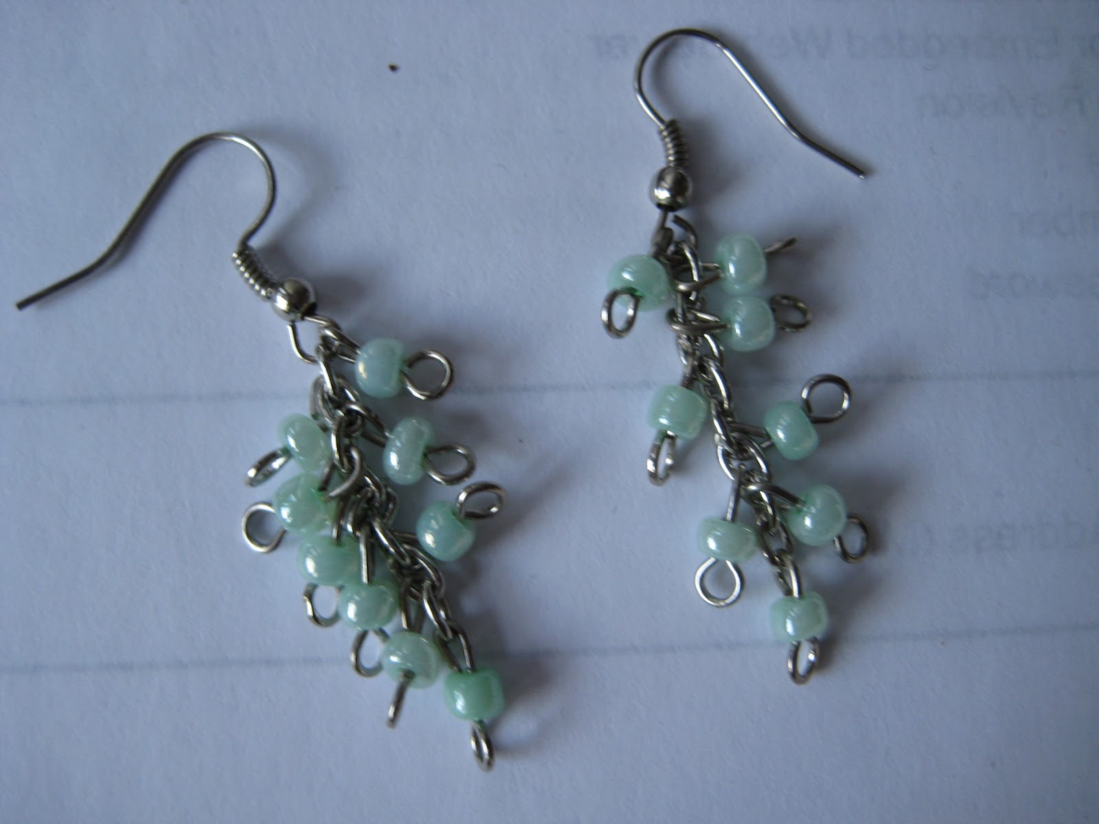 These lovely mint green glass earrings grabbed my attention, and after satisfactorily holding them up to my ears for a few minutes and squealing in delight, man-go-round threw a fiver at the lovely Teresa Kole, designer, and they were MINE! (thank you mister!)
